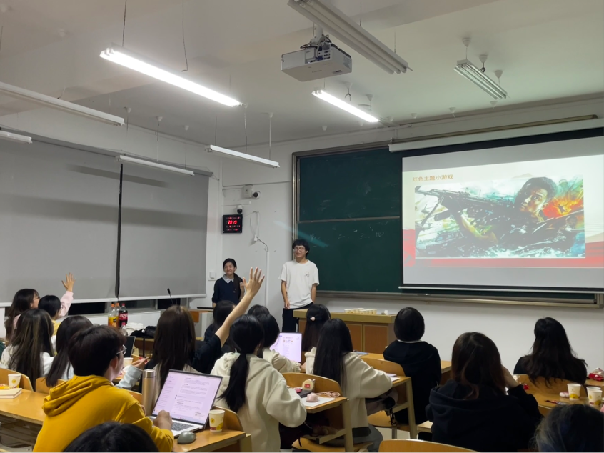 随后组织了红色观影环节,通过观看具有历史教育意义的影片,加深了同学们对党的光辉历程和伟大精神的理解。观影结束后,大家积极参与到红色主题的小游戏中,包括看图猜历史人物、红色事件以及红色住宅等,不仅活跃了现场气氛,也进一步巩固了学习成果。