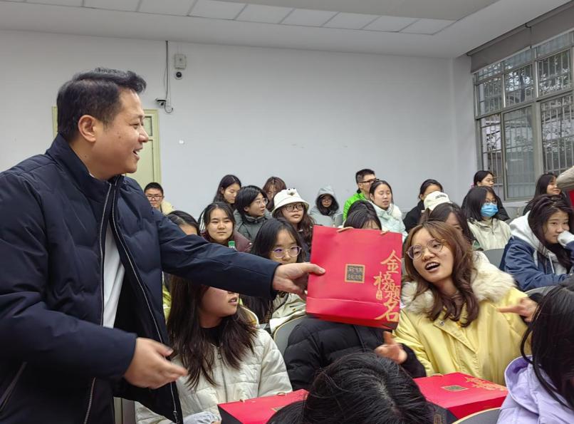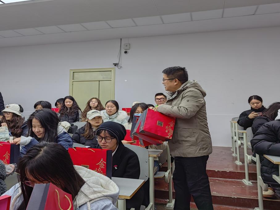 学子分发考研暖心加油包。小小的盒子里承载了学院对于考研学子满满的关怀,为同学们送上美好的祝福与期盼。