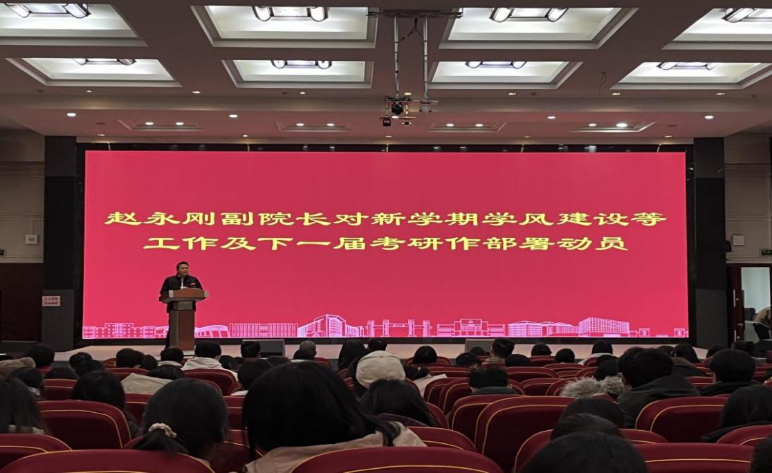 会上,文学院副院长赵永刚通报了2025届文学院学生考研情况并就新学期学风建设等工作及下一届考研作部署动员。他强调,同学们要早做规划,明确目标,要打好专业基石,提升专业素养,希望同学们以“板凳甘坐十年冷”的定力,在追求卓越的道路上行稳致远。