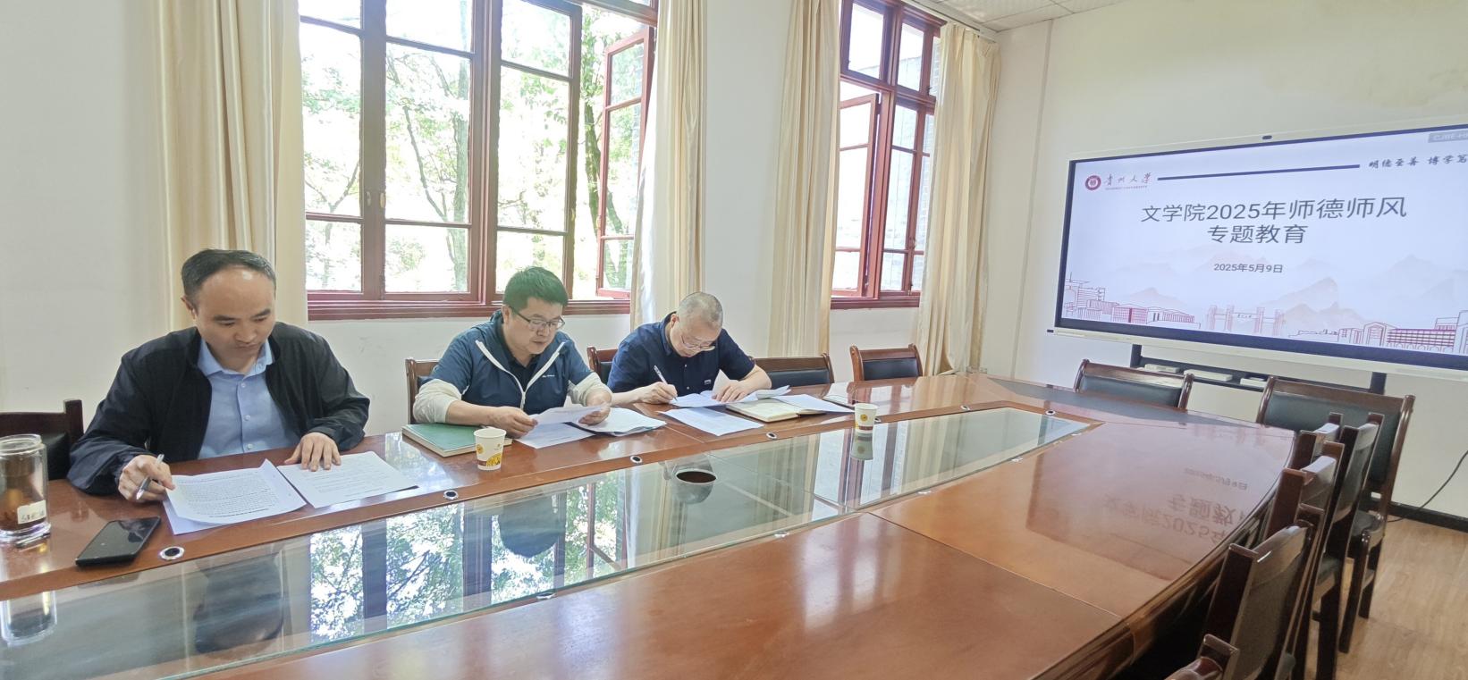 会议最后,陈爱东作总结发言。他指出,本次师德师风专题会议是文学院加强教师队伍建设的重要举措,全体教师要以此次会议为契机,进一步提高思想认识,将师德师风建设贯穿于教育教学工作的全过程。要求,大家要结合自身实际,加强自我约束与自我管理,努力营造风清气正的教育教学环境。同时,学院也将建立健全师德师风考核评价机制,将师德师风表现与教师评优评先、职称晋升、岗位聘任等挂钩,对师德师风失范行为实行“一票否决”,确保师德师风建设取得实效。强调,文学院全体教师要以更加饱满的热情、更加严谨的态度、更加扎实的工作,投身于教书育人事业,在新时代展现新作为,为贵州大学建设高水平大学、为贵州教育事业的高质量发展贡献力量。