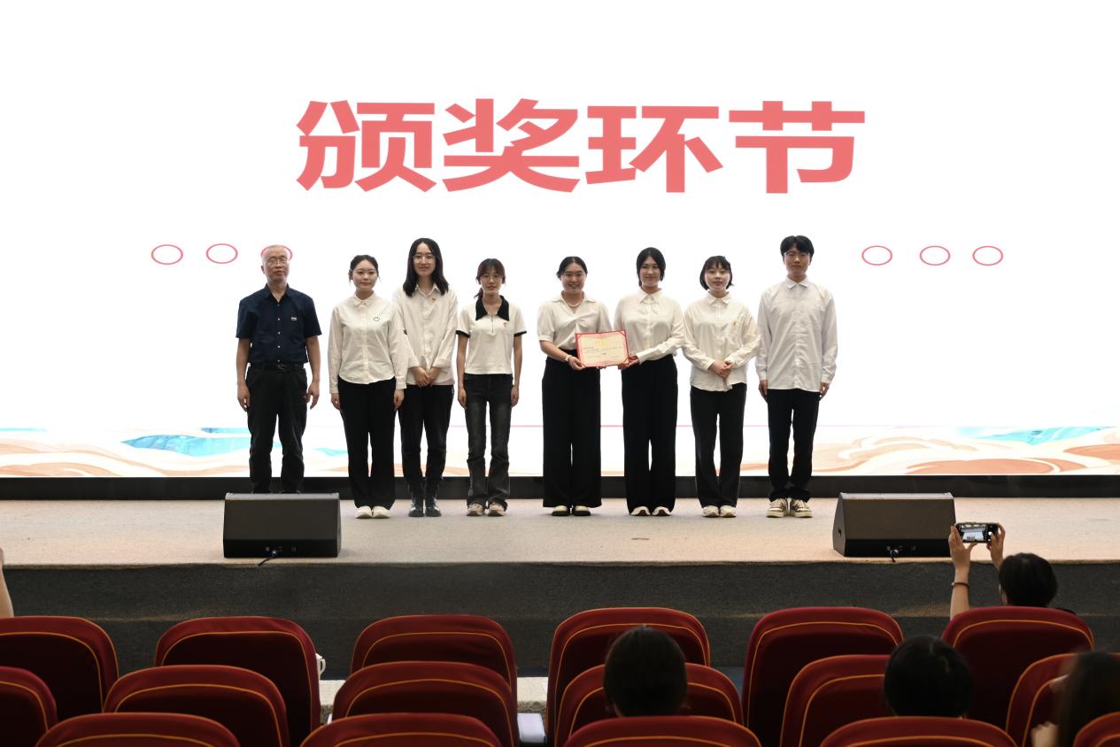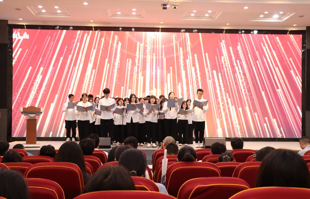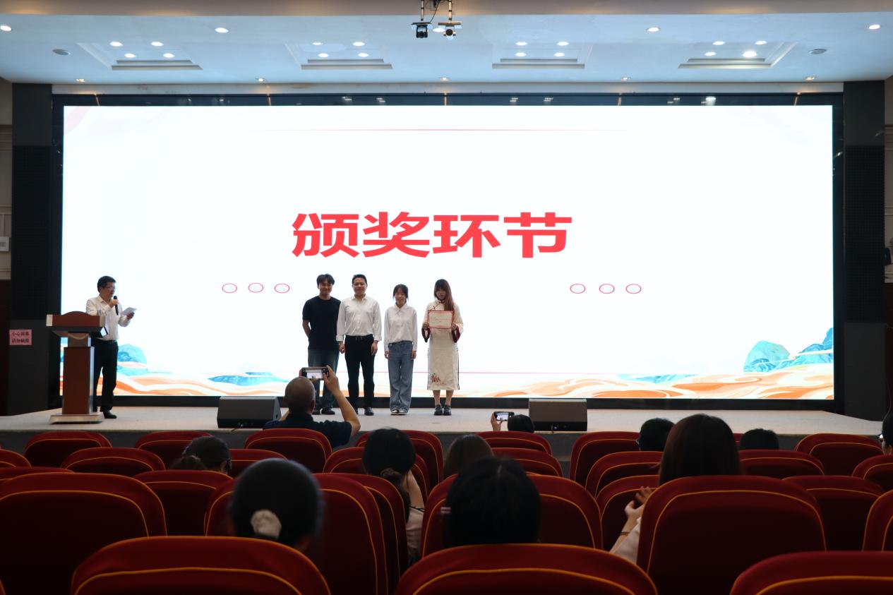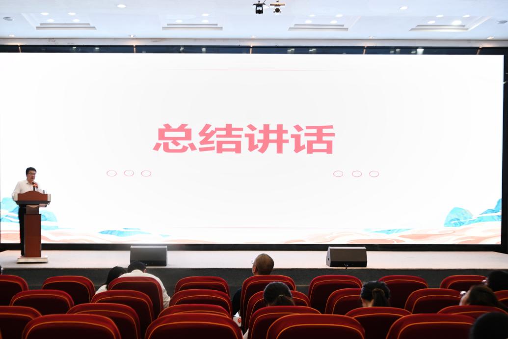 陈爱东作总结讲话。首先,他指出同学们通过朗诵、演绎、情景再现等创新形式展现了青春理想,倾诉了家国情怀,传递了奋斗精神。陈书记希望学院往后多开展此类有意义的活动并以习近平总书记关于阅读的论述作总结,希望同学们在往后的活动中继续展现青春风采,传承经典文化,提升文学素养。