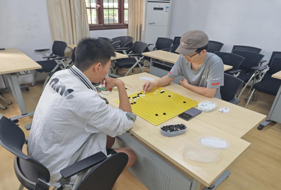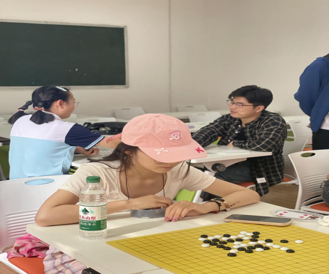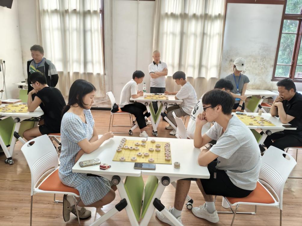 棋类比赛于人文楼举行,在围棋、五子棋、象棋比赛中,同学与老师们以棋会友,纵横“黑白世界”,于方寸棋盘间“奕”绝高下,展开智慧交锋。