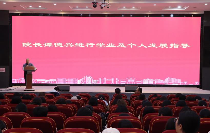 谭德兴进行学业规划及发展指导。他呼吁学生回归课堂,拒绝躺平心态,追求进步和卓越,他认为学生核心的问题在于没有目标,没有目标就没有动力。针对目标的确立和坚守,他给出三点建议:第一,学生要根据个人、专业和学校做出规划,明确自己的优势,确立目标;第二,学生要发挥自己的优势,多读、多记、多思、多写。第三,学生要对未来人生道路进行灵活选择,争取走通多条路。
