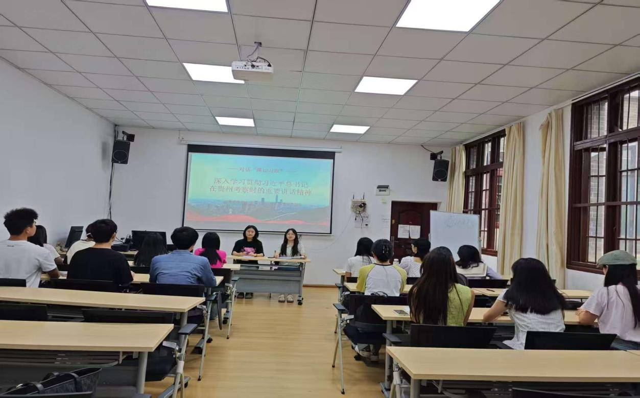 620日,共青团贵州大学文学院研究生总支部委员会在人文楼103教室组织开展“深入学习贯彻习近平总书记在贵州考察时的重要讲话精神”主题溪山习政理论学习活动。会议由文学院研究生团总支副书记张雯主持。文学院2024级研究生共21参加