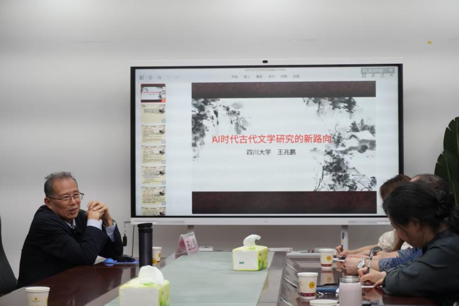 王兆鹏教授以“AI时代古代文学研究的数据化与可视化”为主题,阐述了文学研究者该如何利用人工智能软件及计算机等相关技术拓宽我们的研究渠道。讲座伊始,王兆鹏展示了其团队研究开发的“知识图谱”数据库,并现场教授文学院师生如何使用该数据库检索、下载所需资料。“知识图谱”数据库主要包括唐宋文学编年地图和汉魏六朝文学编年地图‌,这些项目利用数字人文技术,对唐宋及汉魏六朝的文学资源进行编年系地信息平台建设,旨在解决古代文学研究中资料离散和时空分离的问题,给文学研究者带来极大的便利。