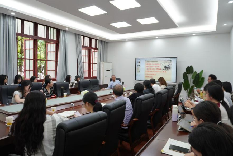 630日上午,由贵州大学人文社科处主办,贵州大学文学院承办的贵州大学总第1039期“溪山论道·文科讲坛”(2025年第41期)在贵州大学文学院104会议室举行。本次讲座邀请四川大学文科讲席教授、中南民族大学二级教授,中国宋代文学学会会长、中国词学研究会会长、中国李清照辛弃疾学会会长、中国韵文学会副会长王兆鹏教授进行讲授。讲座由贵州大学文学院黄海教授主持,文学院教师张军、李青、李敏、林洁、郭付利、陈艳及文学院硕士研究生参加。