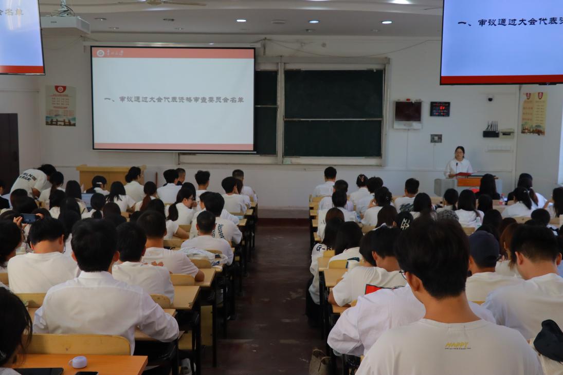 10月10日,贵州大学文学院第十届团委换届大会暨第十次学生代表大会在逸夫楼515DT顺利召开。学院党委书记陈爱东出席会议并致开幕词,副处级组织员周贤军,院团委书记曹家鹏,学院团员代表,学生代表共173人参加了本次大会。