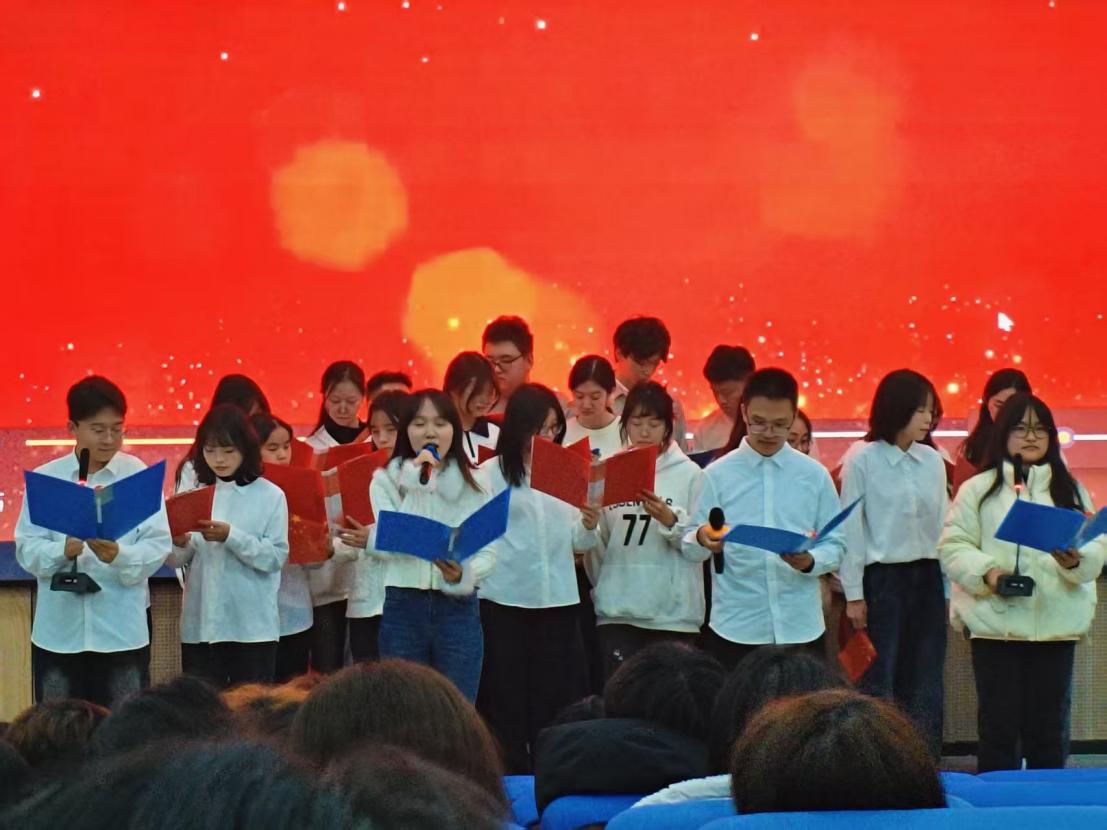 文学院汉语2302班的同学以深情饱满的状态带来朗诵节目《不朽》,同学们用激昂又真挚的声音,表达了对英雄们的无限敬意。朗诵结束后,他们集体合唱《我爱你中国》,悠扬的歌声在活动现场回荡,唱出了对祖国深深的热爱,将现场气氛推向了一个小高潮。